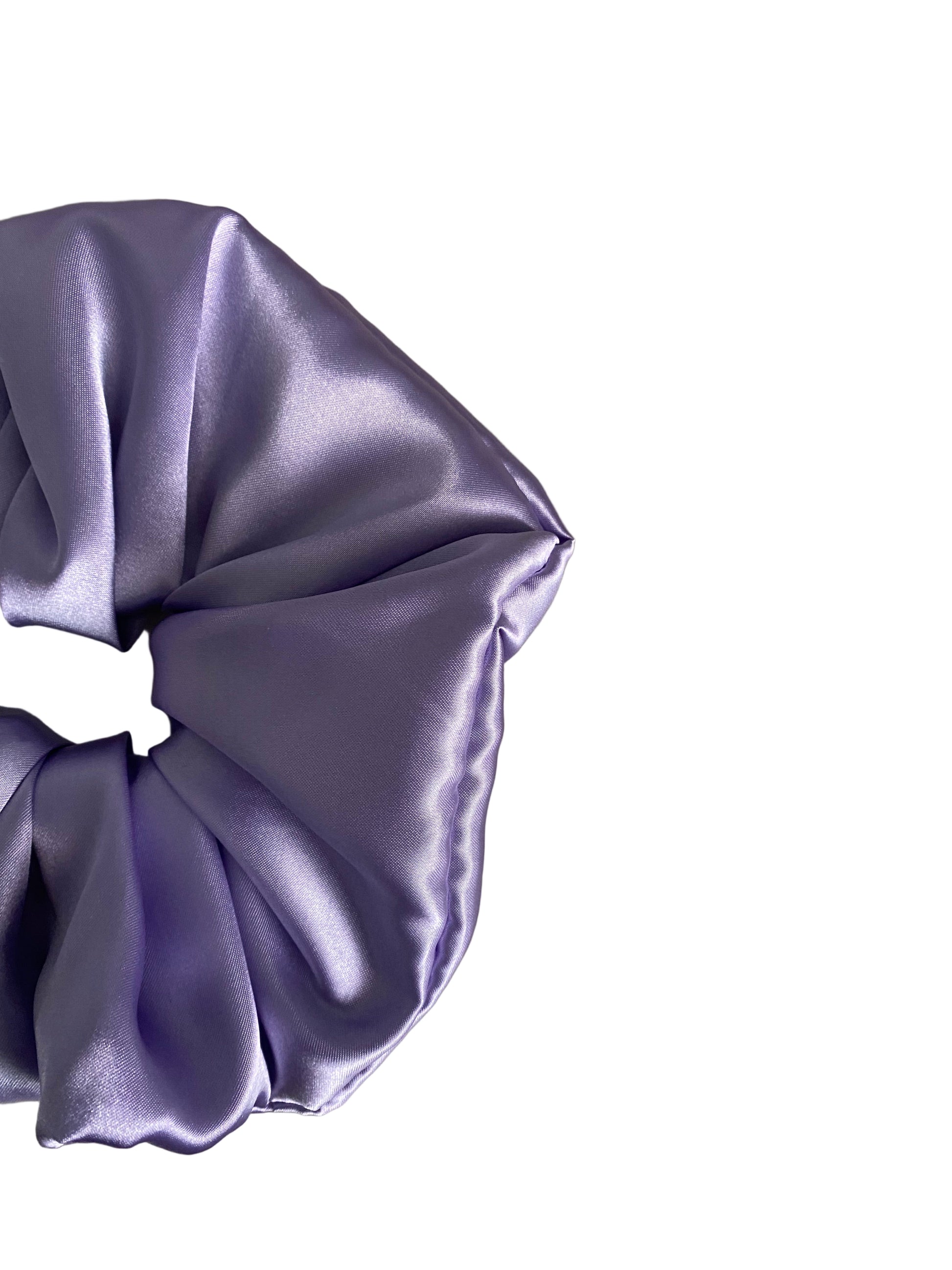 Soft and dreamy, this satin scrunchie adds a touch of elegance to any look with its gentle lilac glow.