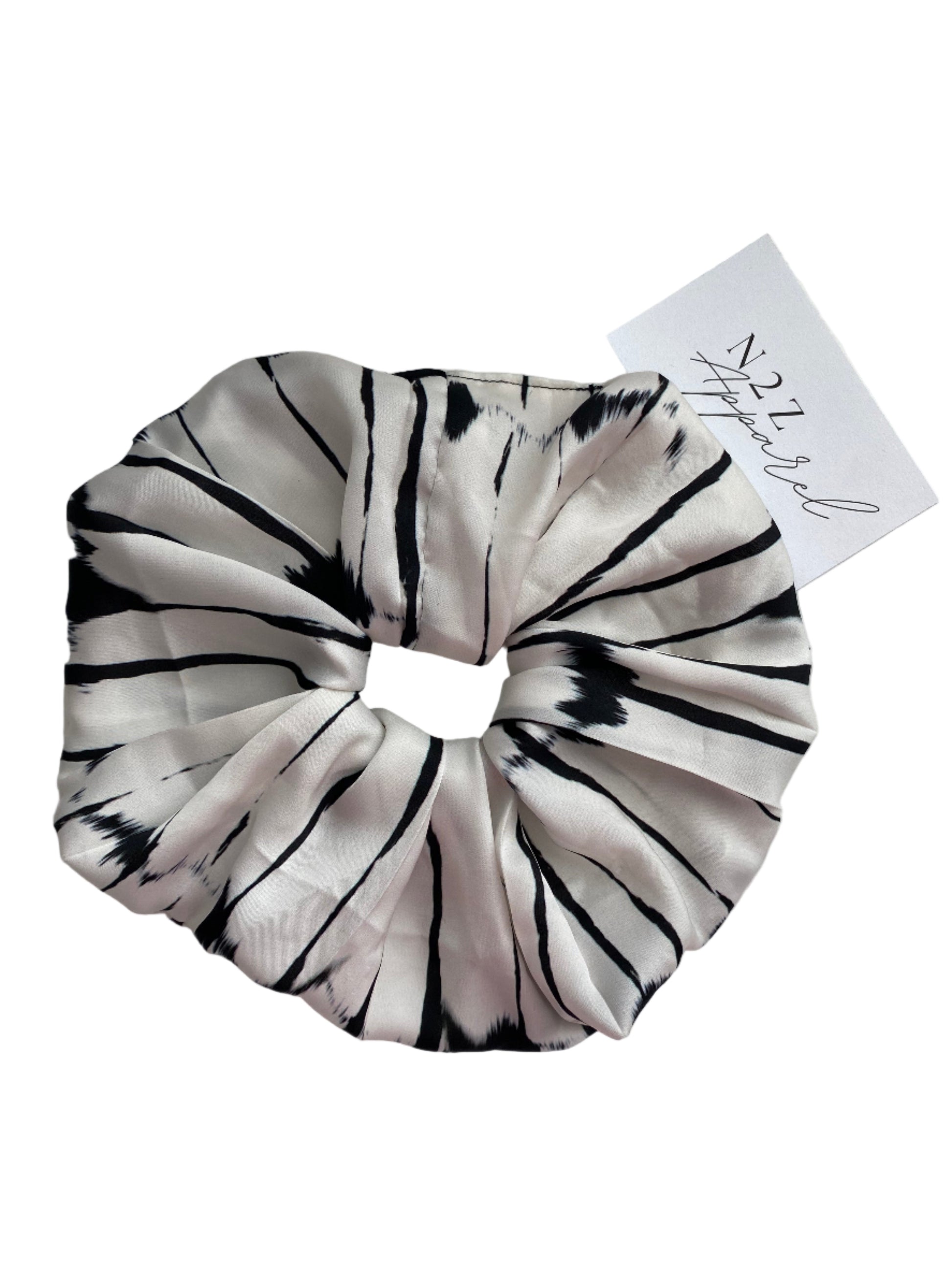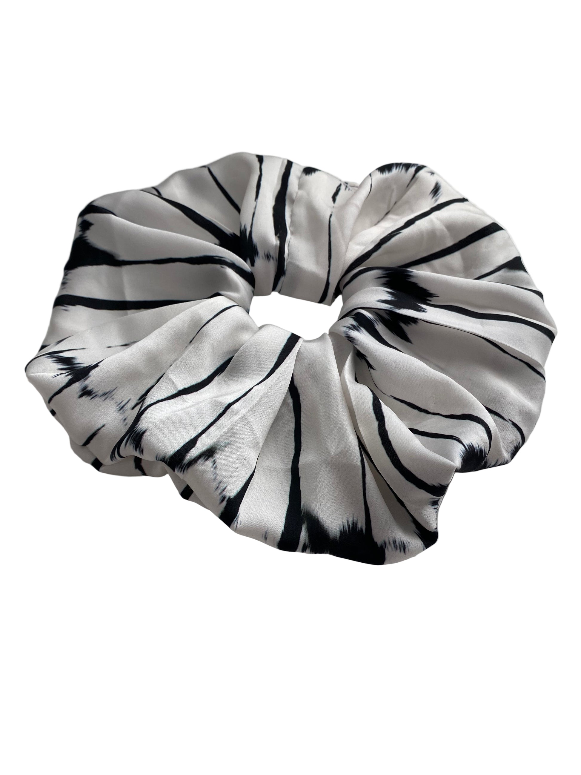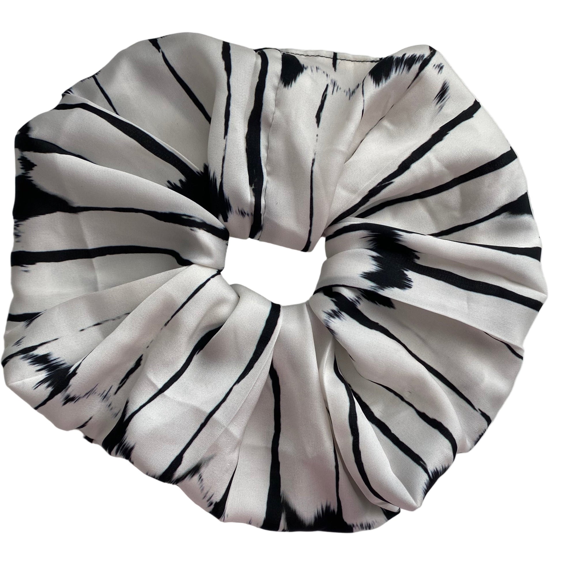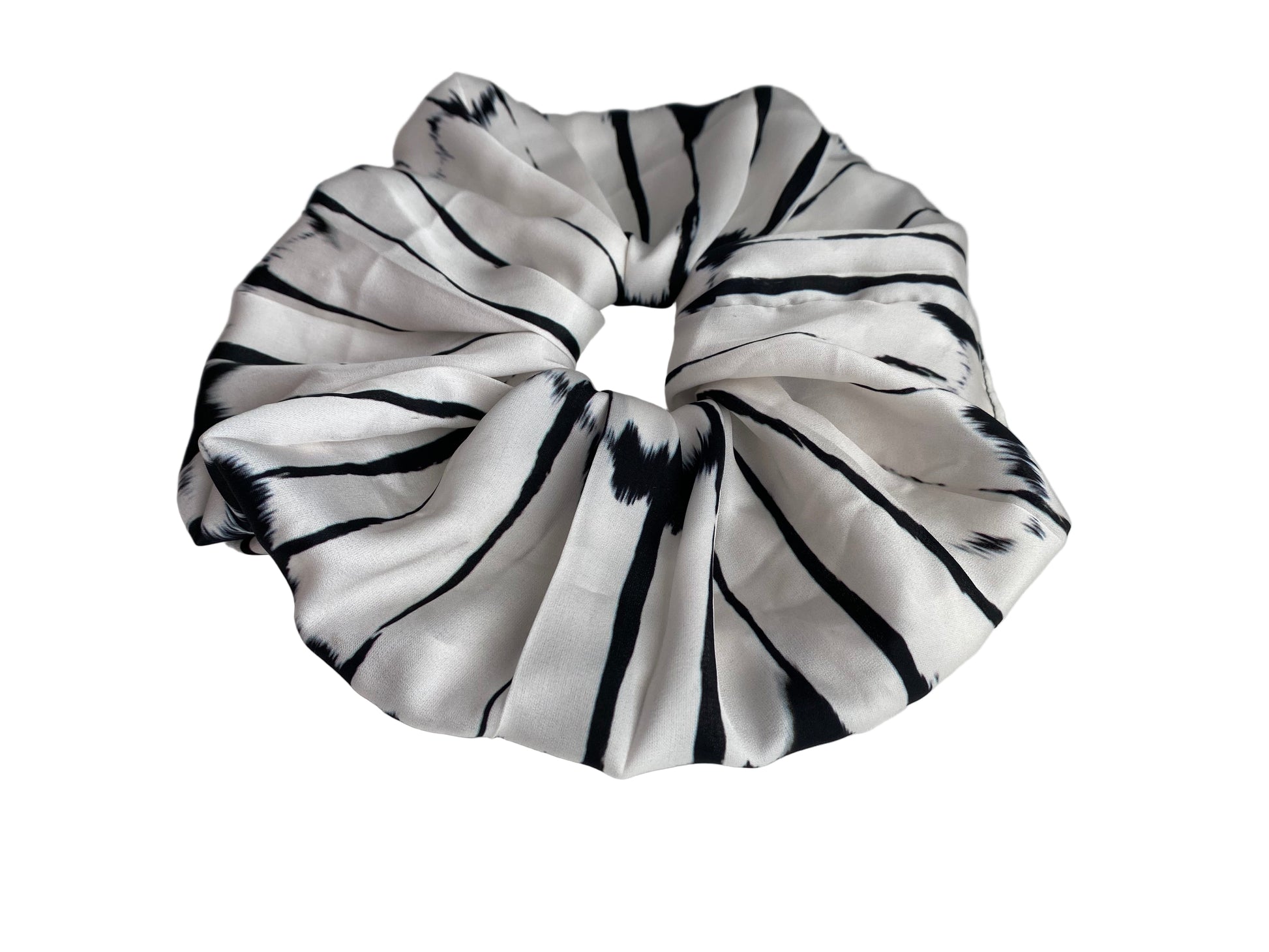 • Satin fabric in black + white burst pattern