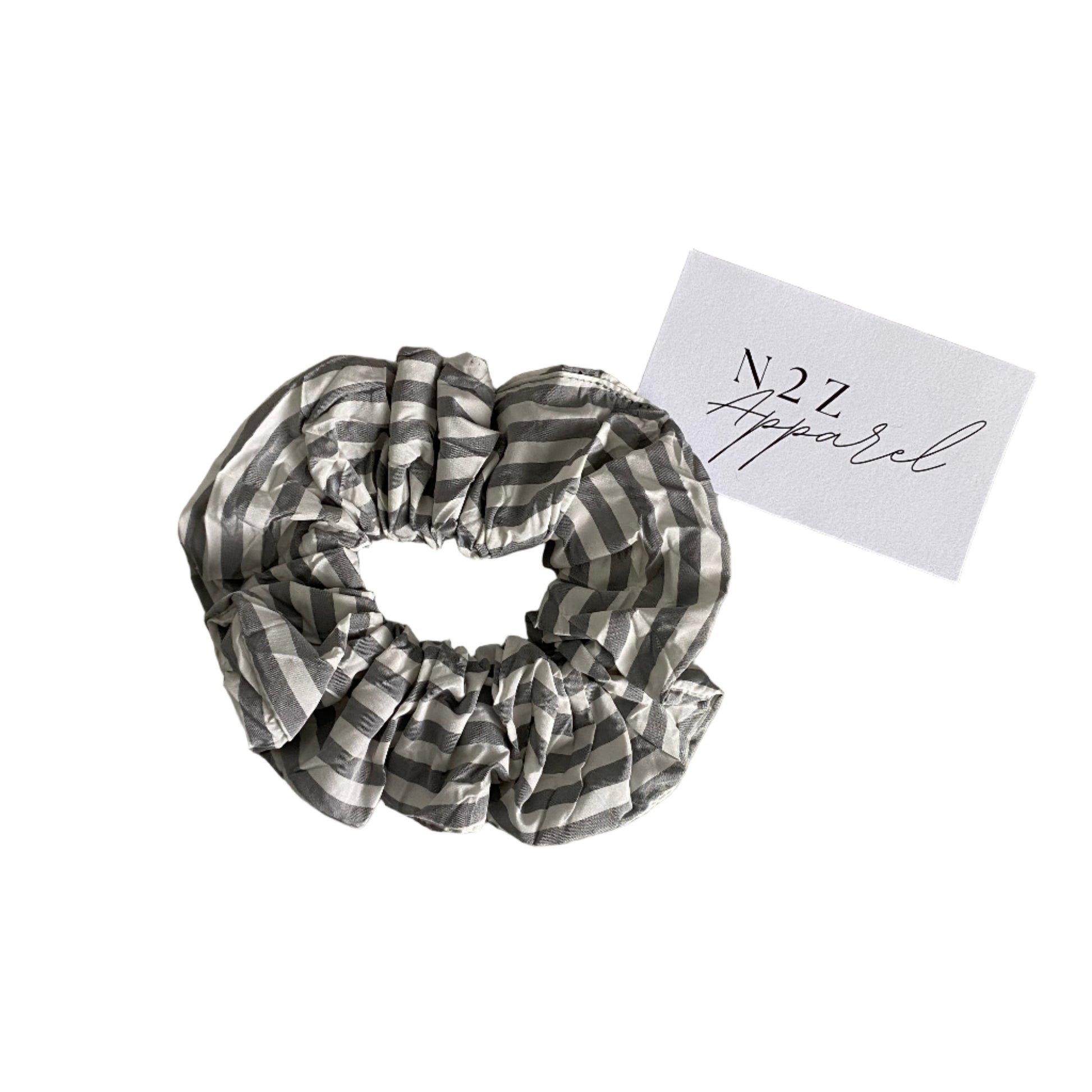 Classic and versatile — this striped grey scrunchie brings a modern, minimalist touch to any outfit. Perfect for everyday wear.